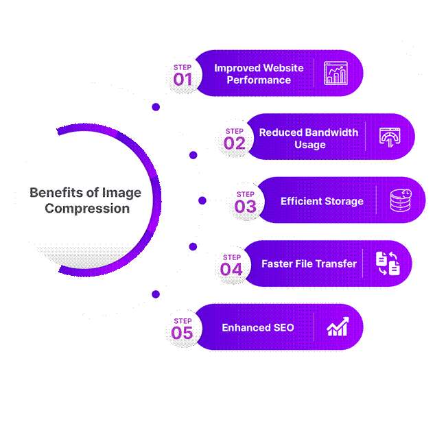 Benefits of image compression for better website performance, bandwidth savings, storage efficiency, faster transfers, and SEO enhancement.