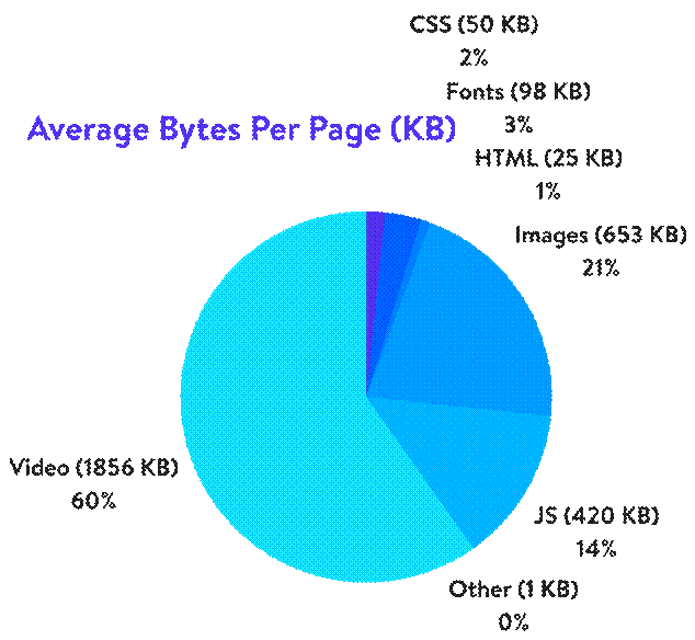 Average bytes per webpage showing videos as the largest data contributor followed by images and scripts.