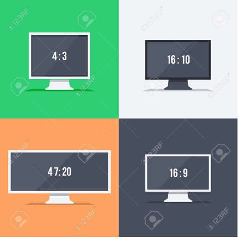 Monitors displaying four common screen aspect ratios: 4:3, 16:10, 47:20, and 16:9.