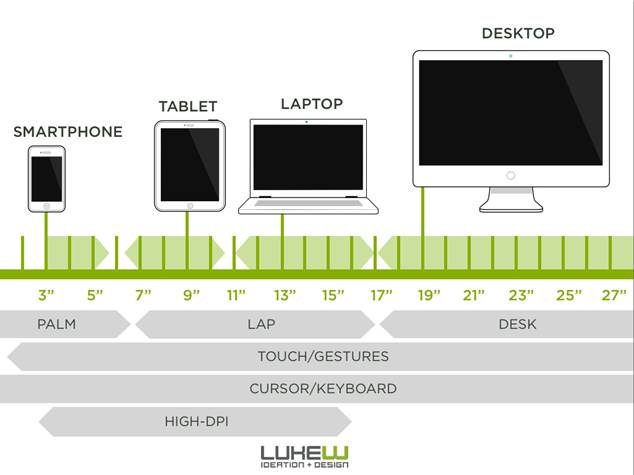 Comparison of screen sizes and device types including smartphones, tablets, laptops, and desktops for responsive design considerations.