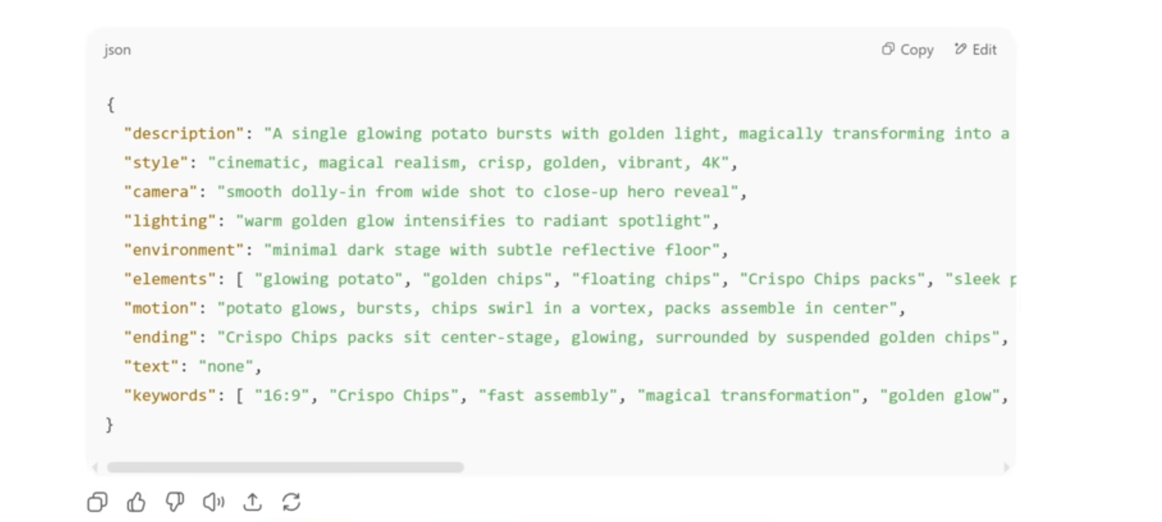 The initial stage involves formulating a JSON prompt for your video. A JSON prompt represents a structured methodology for constructing instructions, where all elements are systematically arranged into distinct categories such as style, tone, scenes, and assets. Imagine it as a meticulously organized blueprint for the AI, rather than a single, sprawling sentence that could easily lead to misinterpretation. JSON facilitates the organization of instructions in a manner that the AI can readily comprehend, thereby minimizing errors and significantly enhancing prompt clarity. This structured configuration assists the AI in producing more precise and elaborate outcomes, which is precisely what is required for crafting superior VFX advertisements.